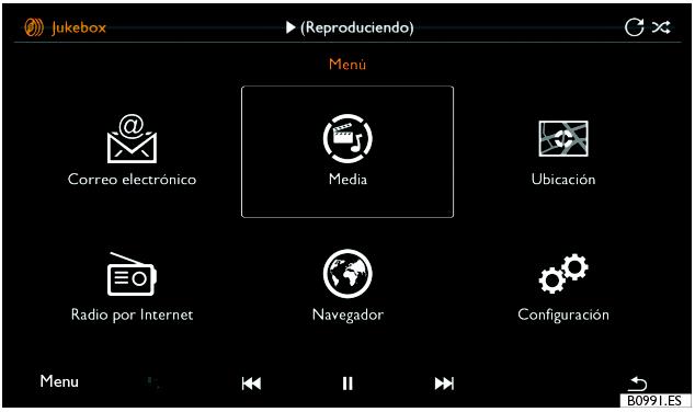 Media en el menú principal se abre el menú principal de medios.